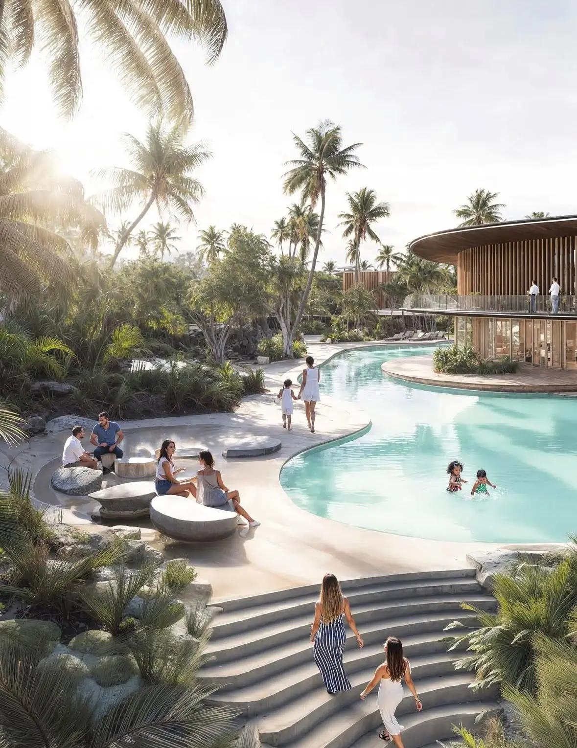 The heart of Lunaya: a swimmable lagoon larger than 20 Olympic pools.