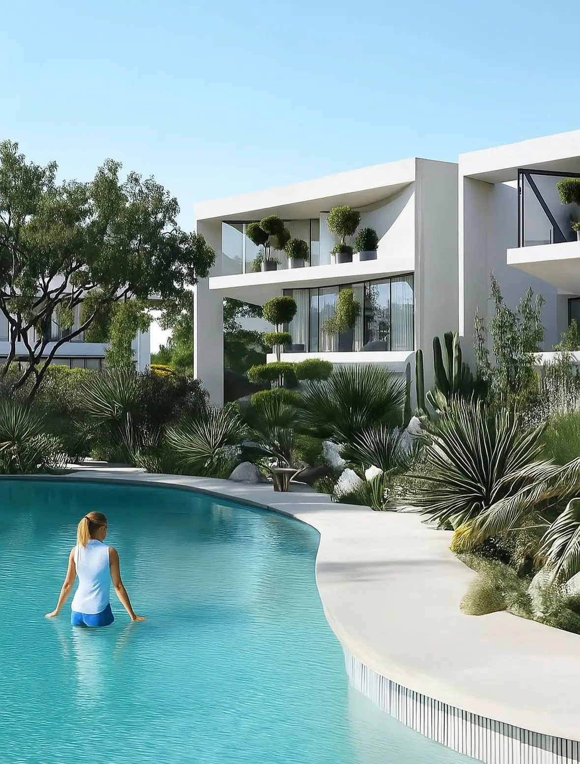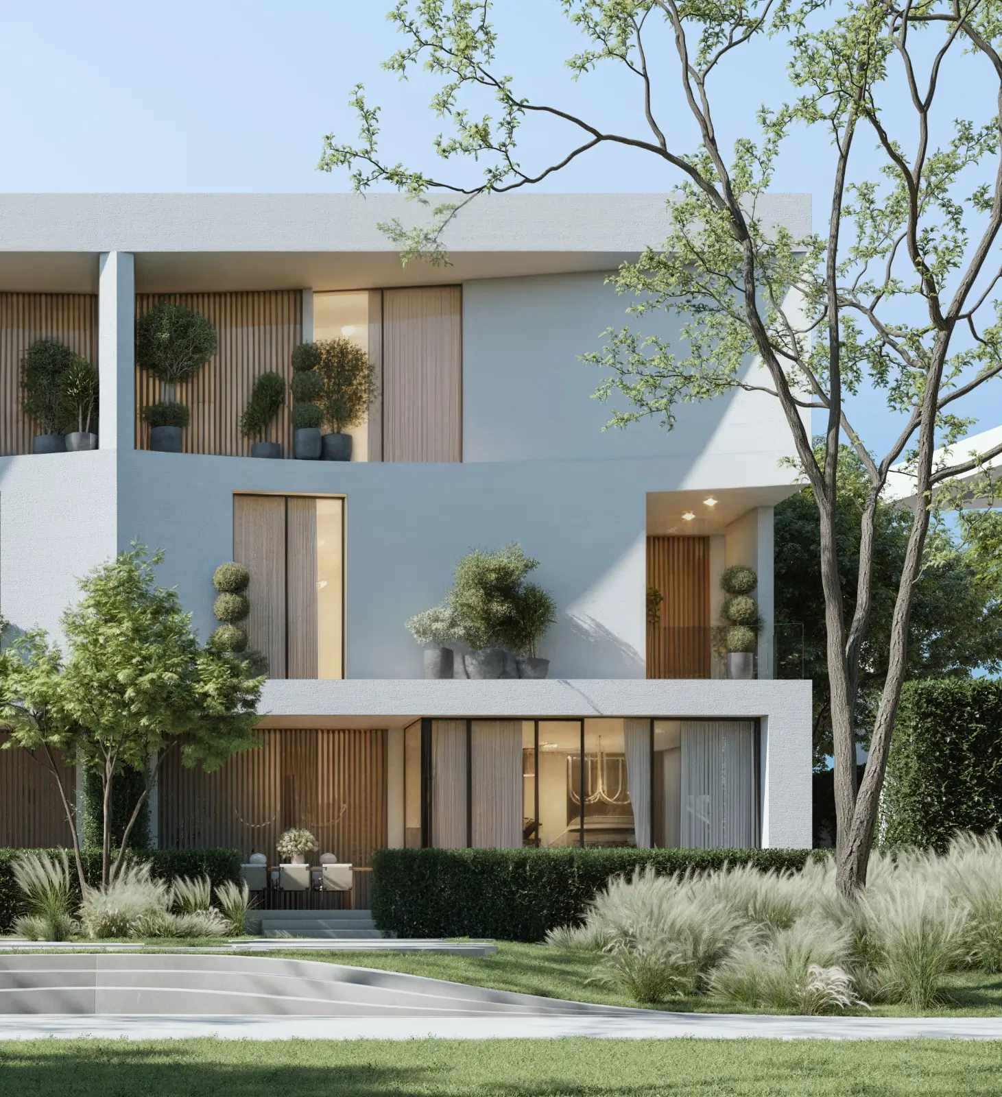 Semi-detached villas with signature curved rooflines, private pools, and landscaped gardens. Architectural excellence inspired by desert dunes.